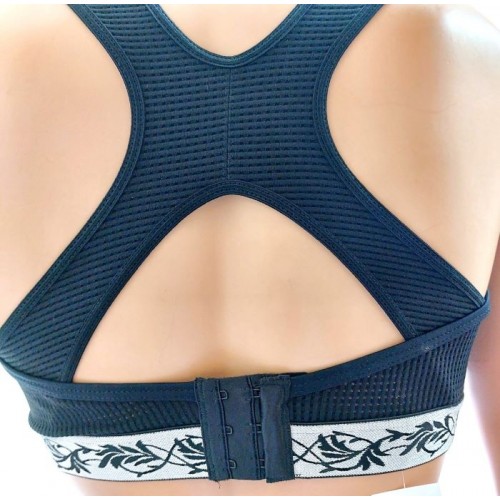 жаккардовом переплетении по нижнему срезу является дополнительной фиксацией. Сзади широкая застежка на крючки и петли усиливает комфорт при занятии спортом.
