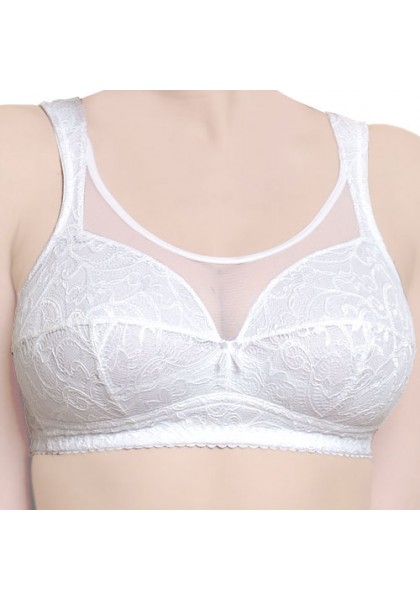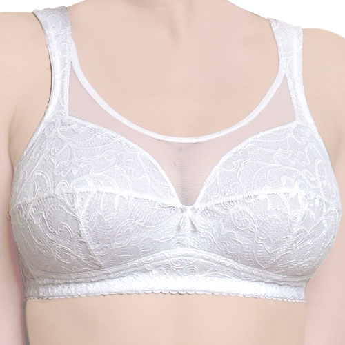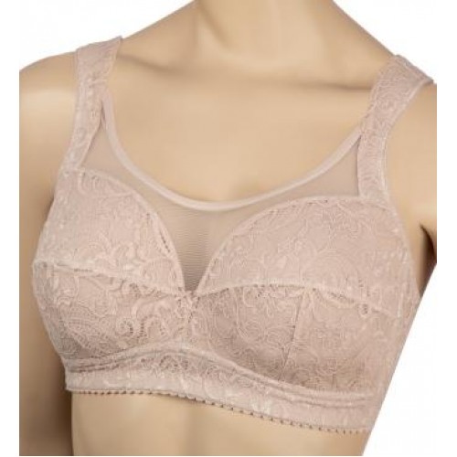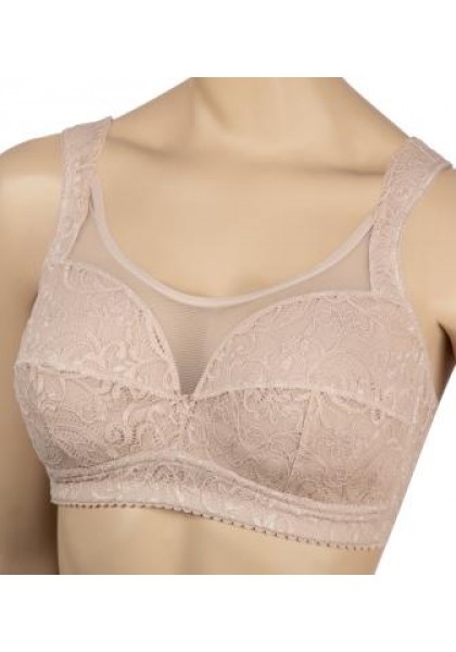 Бюстгальтер из кружевного эластичного полотна, на х/б трикотажной подкладке с прозрачной вставкой по центру, без каркасов. Усилитель из дублированного полотна в нижней части чашек придает форму и обеспечивая поддержку. Боковые детали на подкладке из функционального эластичного полотна. Передняя часть широких бретелей – на дублированном полотне. Все это вместе делает модель невероятно комфортной, к тому же визуально минимизирует объемы.