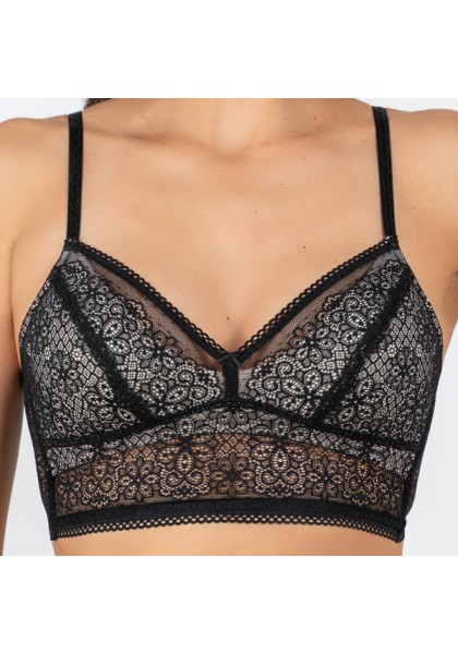 бюстгальтер из невесомого эластичного кружева с геометрическим рисунком,