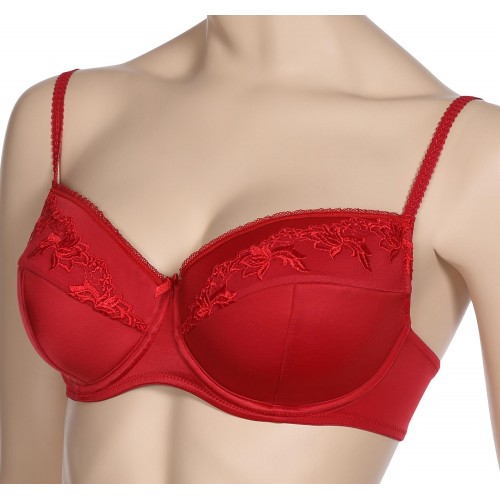 Бюстгальтер из эластичного полотна с чашкой из дублированного полотна  на каркасах. Кружево на верхней и на верхней детали чашки  придает бюстгальтеру нотку шарма. Бретели комбинированные, часть из декоративной эластичной ленты, задние части из эластичной тесьмы с регуляторами длины. Все срезы бюстгальтера обработаны эластичными отделочными лентами. Застежка сзади на крючки и петли. Дополнительным украшением служат три декоративных бантика.