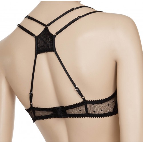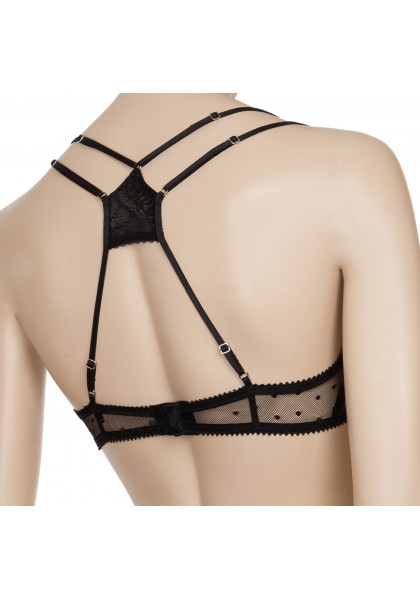Тончайшее изысканное кружево с «ресничками», игра цвета в сочетании с прихотливым узором бретелей-спагетти и забавной миниатюрной деталью на спине добавляют сексуальность образу.
