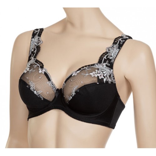 Особую прелесть этой модели придает высококачественное кружево. Оно украшает верхние детали чашек и переходит на бретели. Бюстгальтер эластичный, на каркасах. Нижние детали чашек и передняя деталь из трикотажного полотна на подкладке, обеспечивают комфорт при ношении. Боковые детали усилены пластинами. Бретели эластичные с регуляторами длины. Застежка сзади на крючки и петли. Отделка декоративный бантик в центре.