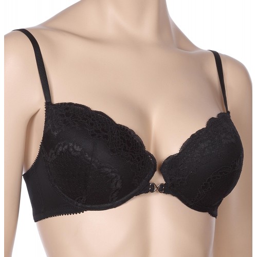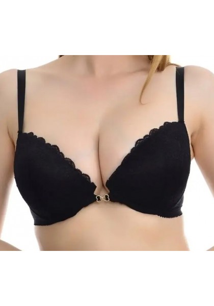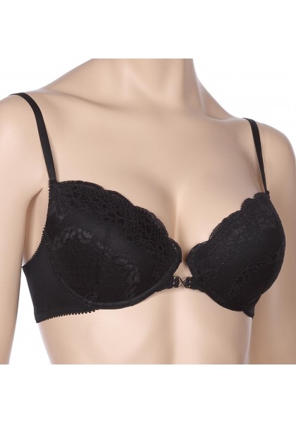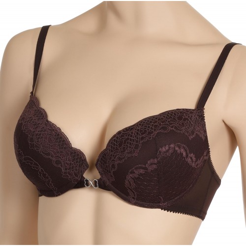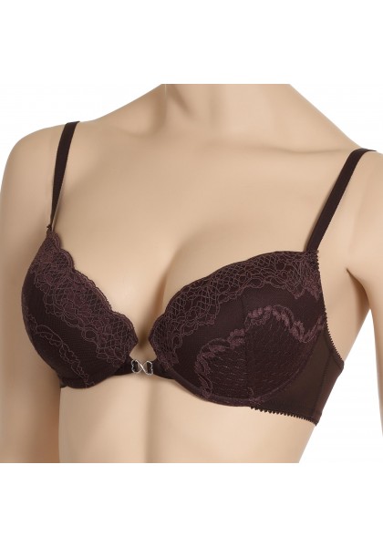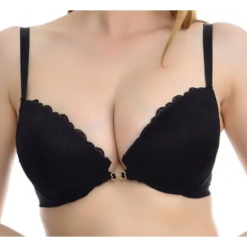 Красивое декольте, в сочетании с изысканным узором кружева, бретели с фиксаторами длины, декоративная металлическая отделка на передней детали  - все это  добавляет сексуальность образу. Все срезы бюстгальтера обработаны эластичной отделочной лентой. Застежка сзади на крючки и петли.