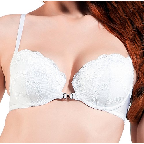 Красивый бюстгальтер на каркасах, с формованными чашками  и очаровательной отделкой из нежного эластичного кружева.   Особая форма лифа одновременно поддерживает и обнажает грудь.