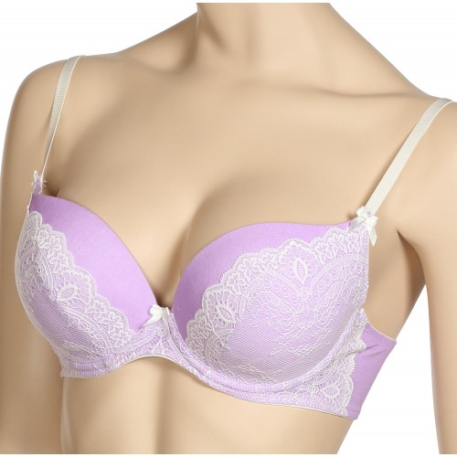Бюстгальтер  из  смесового трикотажного полотна с полиуретаном  цвета  лаванды с нежным эластичным кружевом, на каркасах.  Чашки  бюстгальтера  формованные PUSH UP