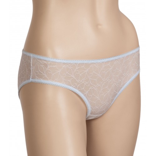 Трусы с низкой посадкой. Особую легкость модель приобрела благодаря прозрачному эластичному полотну со слабовыраженным рисунком. Ластовица на подкладке - из хлопчатобумажного трикотажного полотна. Все срезы обработаны эластичной декоративной лентой.
