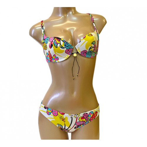 Купальный костюм выполнен из эластичного полотна с рисунком. Чашки из готового дублированного полотна на каркасах. Регулируемые бретели. Передняя часть бюстгальтера имеет регулировку расстояния между грудью, что даёт дополнительный комфорт при носке. Трусы гладкие с боковыми швами с низкой посадкой. Прекрасно подходит для летнего отдыха.