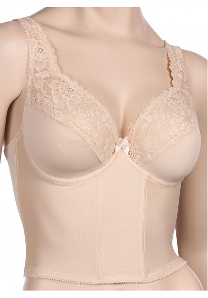 укреплены пластинами. Бретели эластичные с регуляторами длины. Застежка на