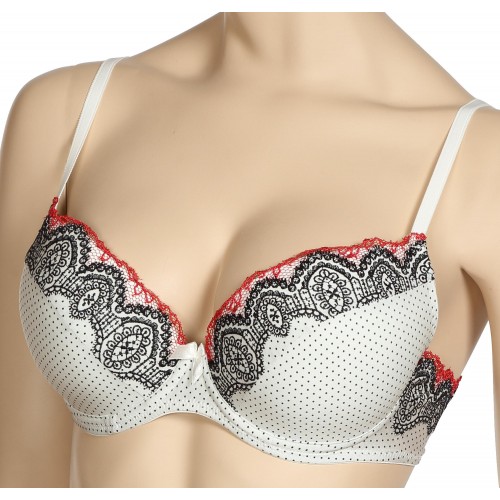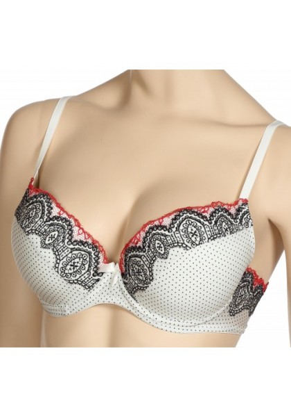 Бюстгальтер из оригинального кружева с принтом в горох и контрастной вышивкой с формованными чашками PUSH-UP,