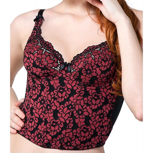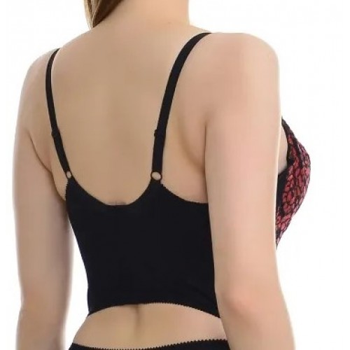 Полуграция эластичная, на каркасах.   Верхние детали чашек  полуграции из эластичного кружева. Нижние детали чашек и передние детали из кружевного эластичного полотна на подкладке из хлопчатобумажного трикотажного полотна, задние детали на подкладке из эластичного полотна. Бретели эластичные с регуляторами длины. Застежка сзади на крючки и петли. Отделка бантик