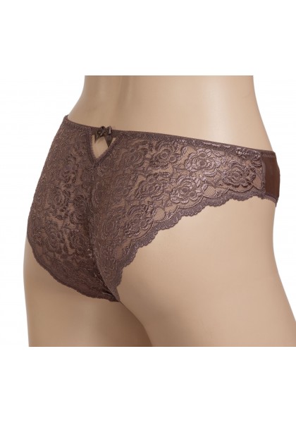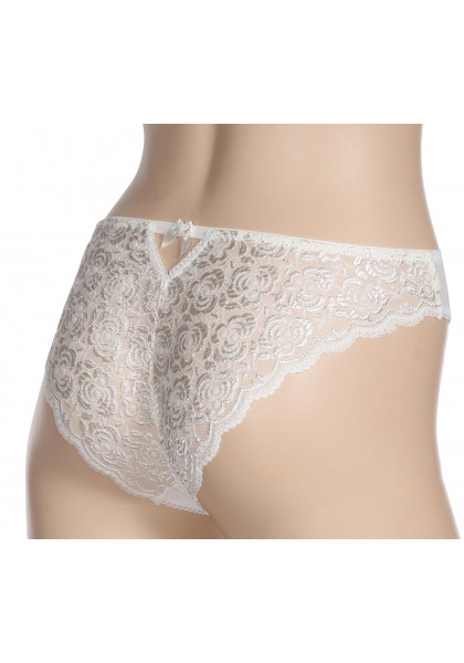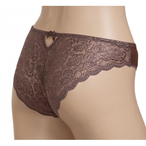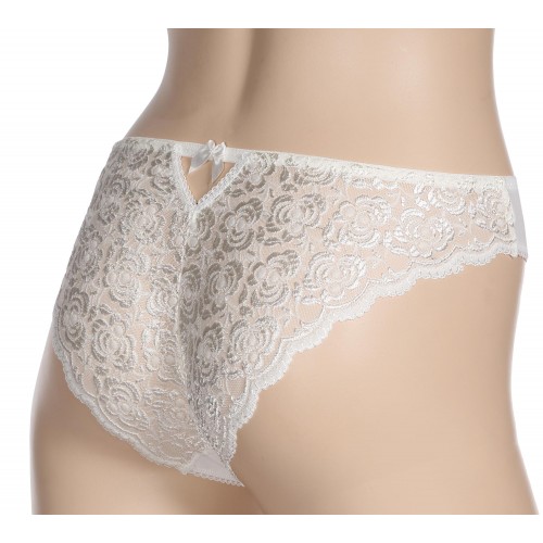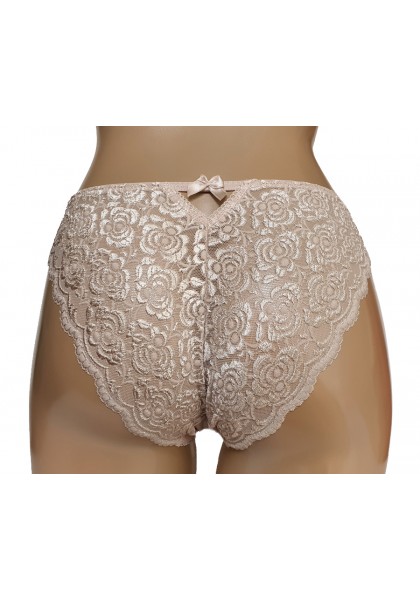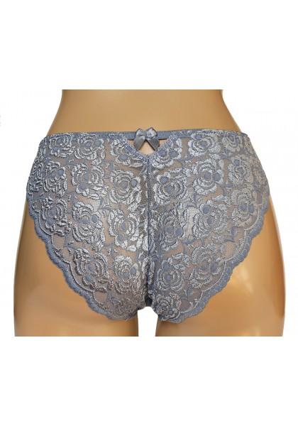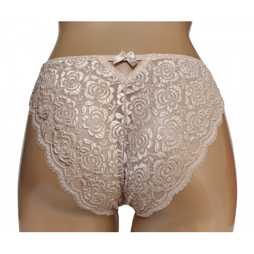 Трусы эластичные с открытой линией бедра. Широкое эластичное кружево с цветочным мотивом и капелькой на задней детали с бантиком придают модели игривый вид. Задние срезы по линии бедра без дополнительной обработки отделочными лентами делают трусы незаметными под верхней одеждой. Лаконичная передняя деталь из нежного эластичного полотна комфортна при носке. Верхний срез трусов обработан функциональной эластичной отделочной лентой. Передние срезы ножек обработаны узкой эластичной тесьмой плоскими швами. Ластовица на подкладке из хлопчатобумажного трикотажного полотна.