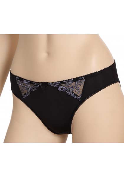низкой посадкой. Впереди декоративные кружевные вставки. Верхние и нижние срезы обработаны узкой эластичной тесьмой.
