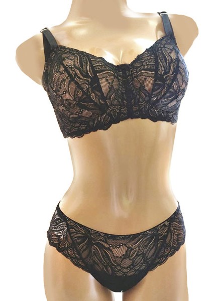 модель трусиков из эластичного кружева. В черном цвете в области живота – подкладка из