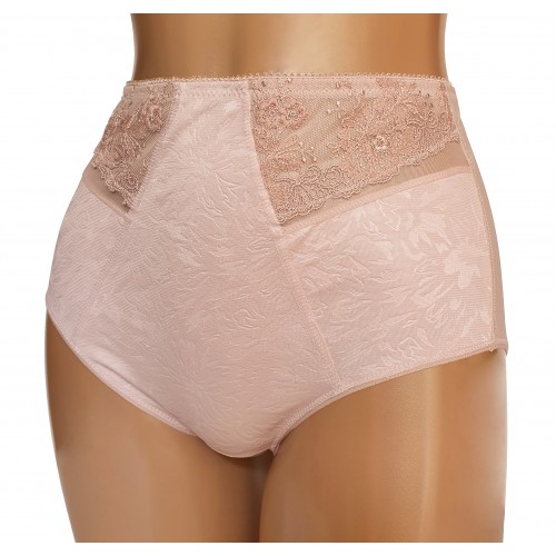 трикотажного полотна, передняя деталь из тисненного трикотажного полотна декорирована вышитым кружевом. Ластовица на