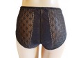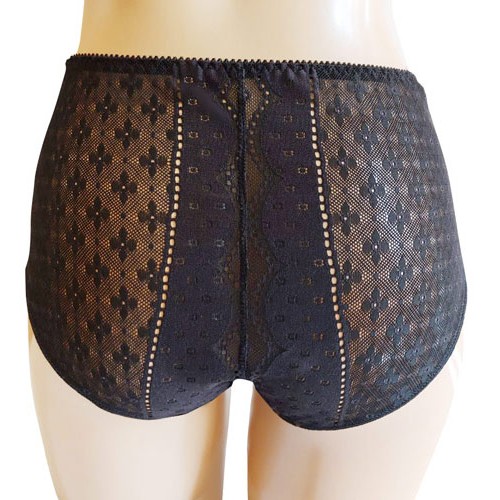 Высокие трусы из изящного по рисунку эластичного французского кружева. Передняя деталь за счет плотности рисунка дает небольшую коррекцию в области живота, а волнообразный край по верхнему срезу придает легкость модели. Нижние срезы передней детали дополнены декоративными деталями из нежного кружевного полотна в сгиб, что добавляет комфорта в носке. Линии ножек обработаны мягкой узкой тесьмой, а верхний срез – функциональной эластичной отделочной лентой. Подкладка ластовицы из хлопчатобумажного трикотажного полотна. Состав: Подкладка 100% ХЛОПОК, ПА - 79%, ЭЛАСТАН – 21%.