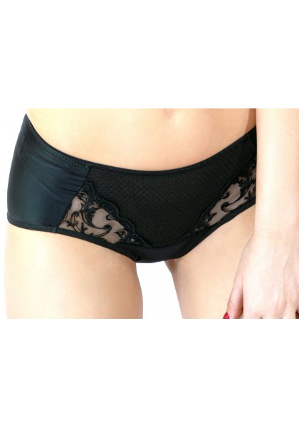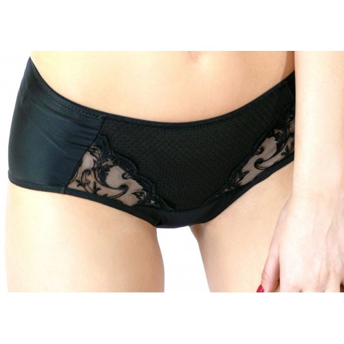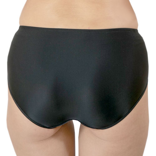 Трусы классические средней посадки из кружева и эластичного полотна. Передняя деталь трусов усилена эластичной подкладкой. Все срезы трусов обработаны эластичной отделочной лентой. Ластовица на подкладке из хлопчатобумажного трикотажного полотна.