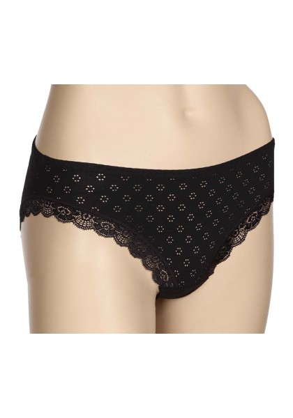 Трусы очень приятны в носке, благодаря высокому содержанию хлопка. Ажурный рисунок и кружевная отделка делает это изделие более женственным. Верхний срез трусов обработан эластичной лентой. Ластовица на подкладке из хлопчатобумажного полотна.