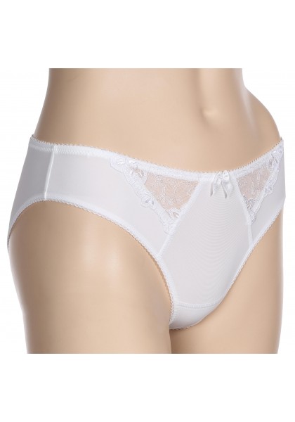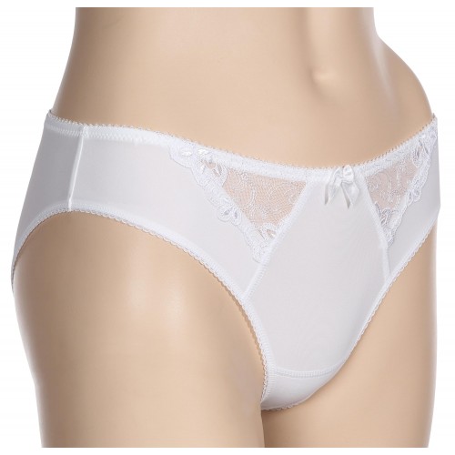 посадкой из эластичного полотна, с декоративными вставками из кружева. Кружевные