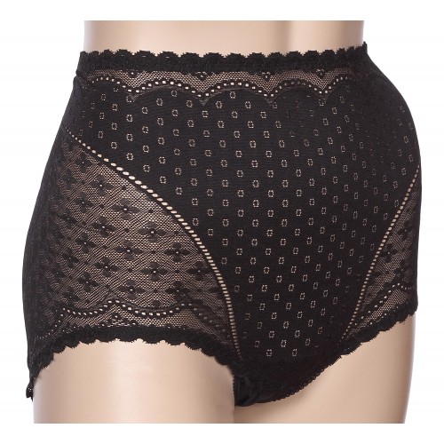 женские трусы с высокой посадкой выполнены из широкого эластичного кружева, которое имеет