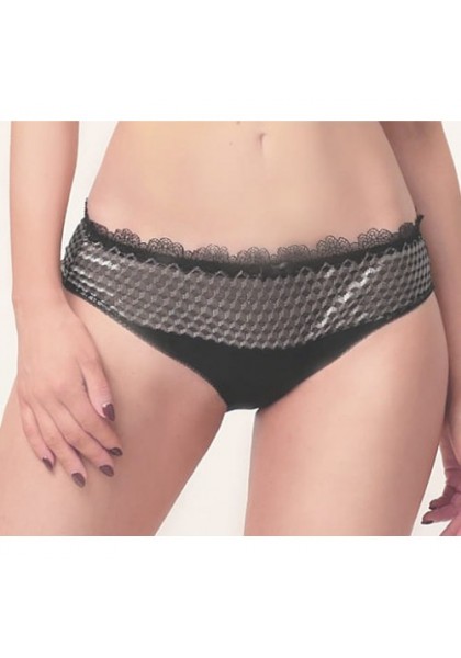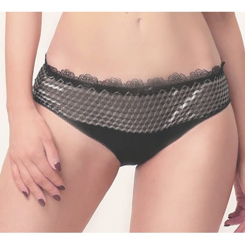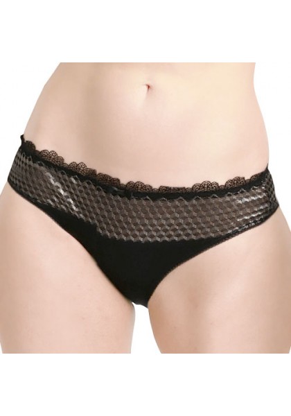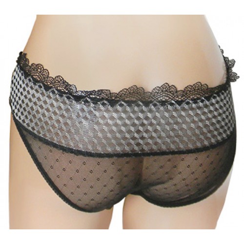 Модель с низкой посадкой. Верх трусов декорирован фестонным кружевом. Ластовица их хлопчатобумажного