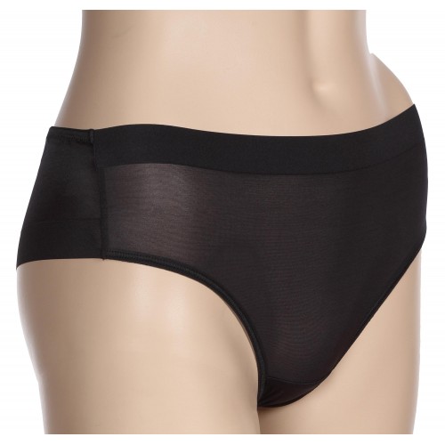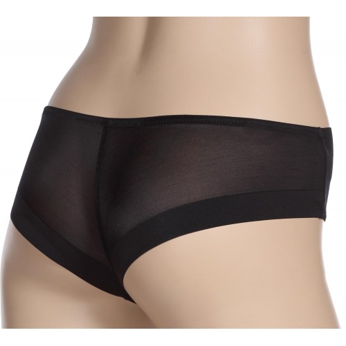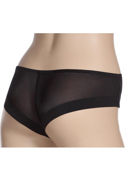 Трусы  стринги  из очень нежного эластичного  полотна   с уплотненной декоративной отделкой по краю.   Подкладка  ластовицы из хлопчатобумажного трикотажного полотна. Передние и нижние срезы трусов обработаны эластичной  тесьмой.